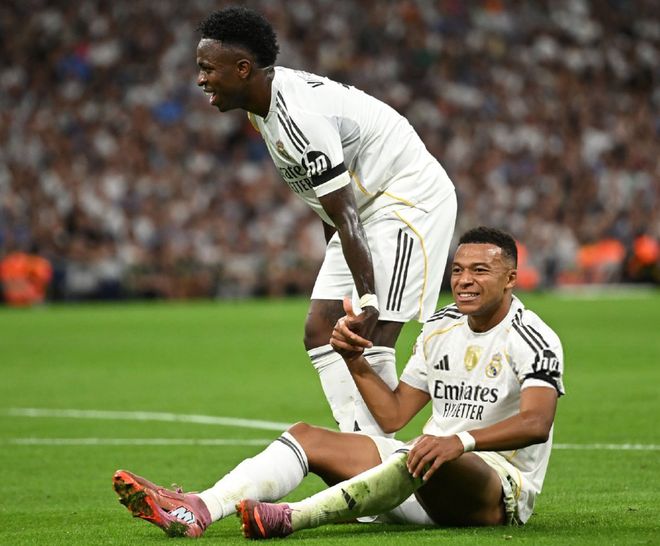 多一人作战的皇马,第81分钟彻底终结了悬念,迪亚斯助攻姆巴佩破门得分,将全场比分定格为了3-0,不过姆巴佩随后受伤离场,直接返回了更衣室,让球迷非常担心,在主场击败黄色潜水艇之后,皇马在多赛一场的情况下,暂时超越巴塞罗那,重返西甲第一。