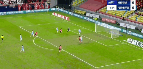 第20分钟,严鼎皓主罚前场任意球直接轰门得手,成都蓉城主场1-0领先!